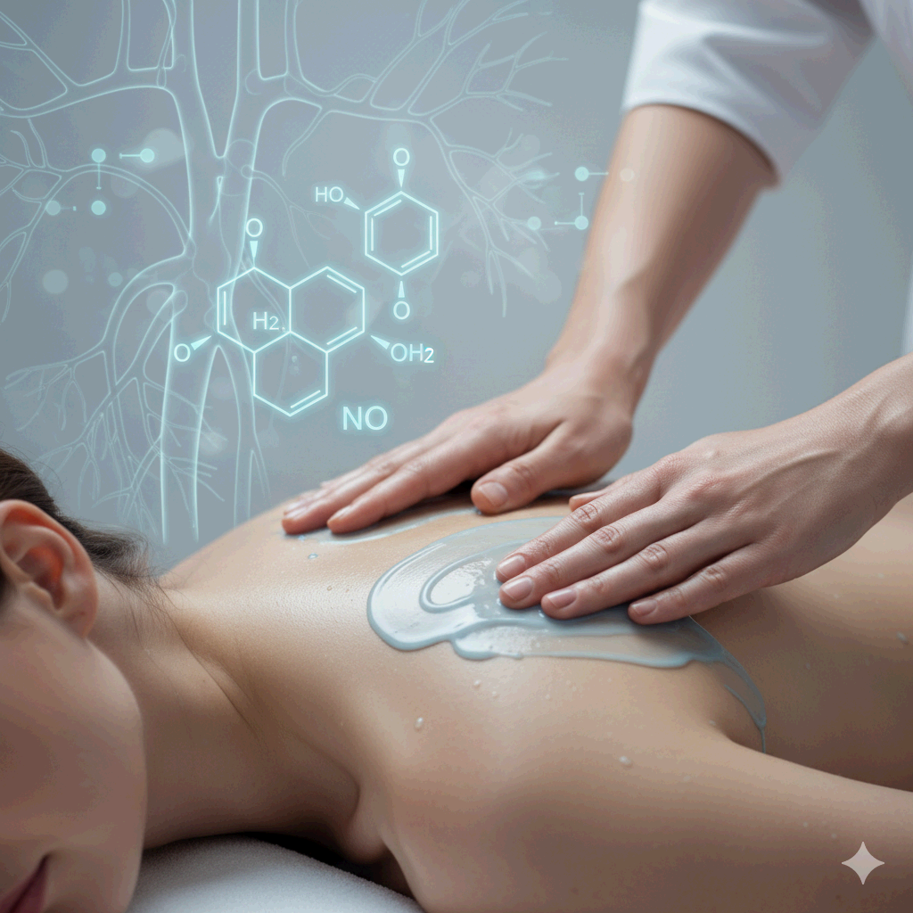 산화질소는 혈관을 확장(Vasodilation)시키는 데 결정적인 역할을 하는 분자입니다. 마사지나 에센셜 오일의 작용을 통해 NO의 생성이 촉진되면, 혈관의 직경이 넓어져 혈액이 더 빠르고 원활하게 흐르게 되며, 결과적으로 혈압 강하 및 산소와 영양소의 조직 전달 효율이 높아집니다.